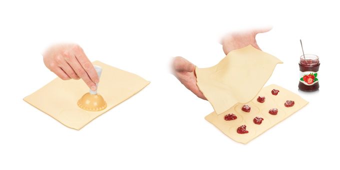 Forma krapfen Tescoma Ideale per preparare facilmente piccoli krapfen ripieni. Versare cioccolato, marmellata o crema pasticcera su un primo strato di impasto con spessore di circa 3 mm, coprire con un altro strato di impasto, quindi tagliare i krapfen con l’apposito utensile e friggerli nell’olio. Prodotto in plastica resistente di alta qualità. Lavabile in lavastoviglie. | |